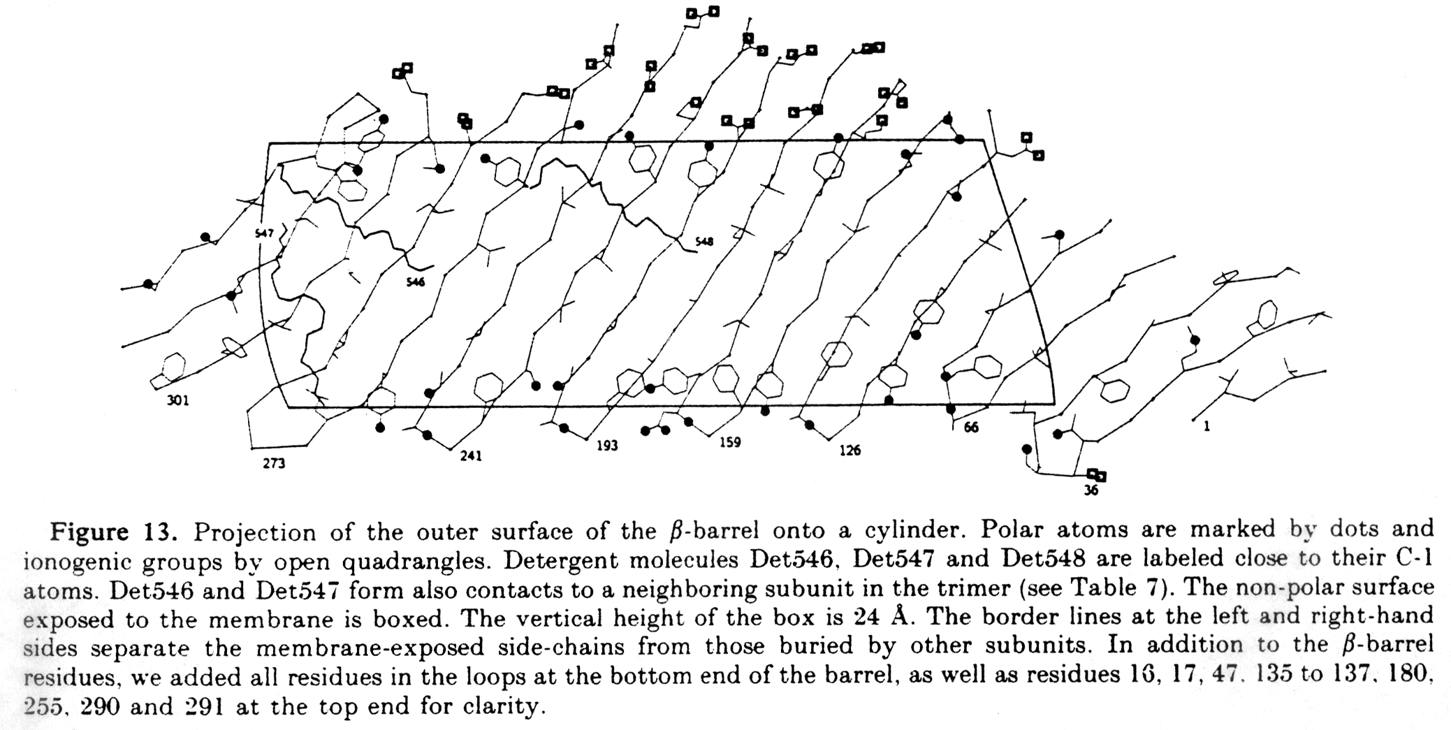 from Cowan et al., 1992 Fig. Projection map of porin barrel