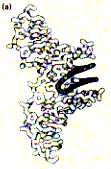 Drug-DNA interaction DNA as carrier of genetic information is a major target for drug interaction because of the ability to interfere with transcription (gene expression and protein synthesis) and DNA replication, a major step in cell growth and division. The latter is central for tumorigenesis and pathogenesis. There are three principally different ways of drug-binding. First, through control of transcription factors and polymerases. Here, the drugs interact with the proteins that bind to DNA. Second, through RNA binding to DNA double helices to form nucleic acid triple helical structures or RNA hybridization (sequence specific binding) to exposed DNA single strand regions forming DNA-RNA hybrids that may interfere with transcriptional activity. Third, small aromatic ligand molecules that bind to DNA double helical structures by (i) intercalating between stacked base pairs thereby distorting the DNA backbone conformation and interfering with DNA-protein interaction or (ii) the minor groove binders. The latter cause little distortion of the DNA backbone. Both work through non covalent interaction. The small ligand drug approach offers a simple solution. The synthesis